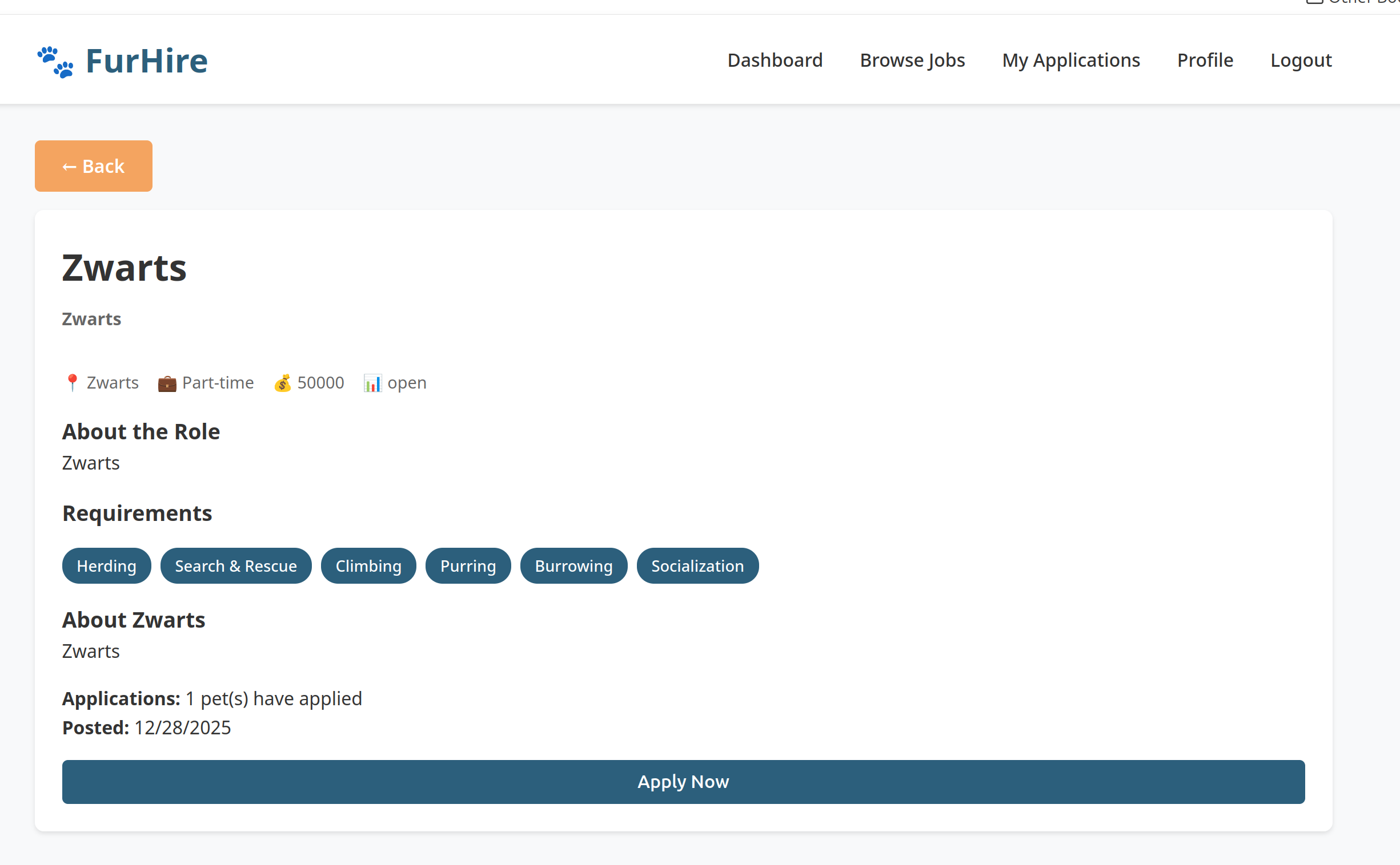 Log in as the JobSeeker and apply to the newly created job posting.