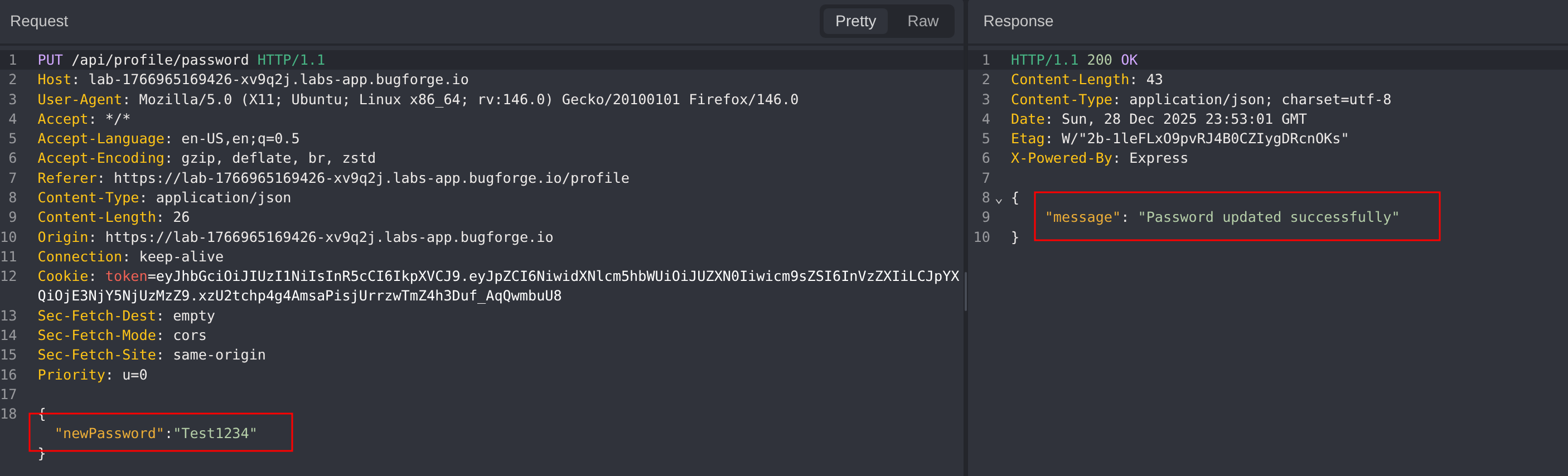 Execute the payload. Confirm that the password for the test account has been updated successfully.