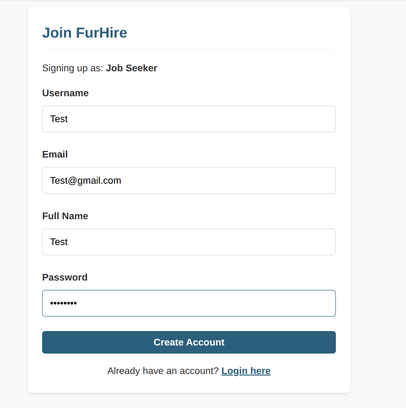 - One account with the JobSeeker role
