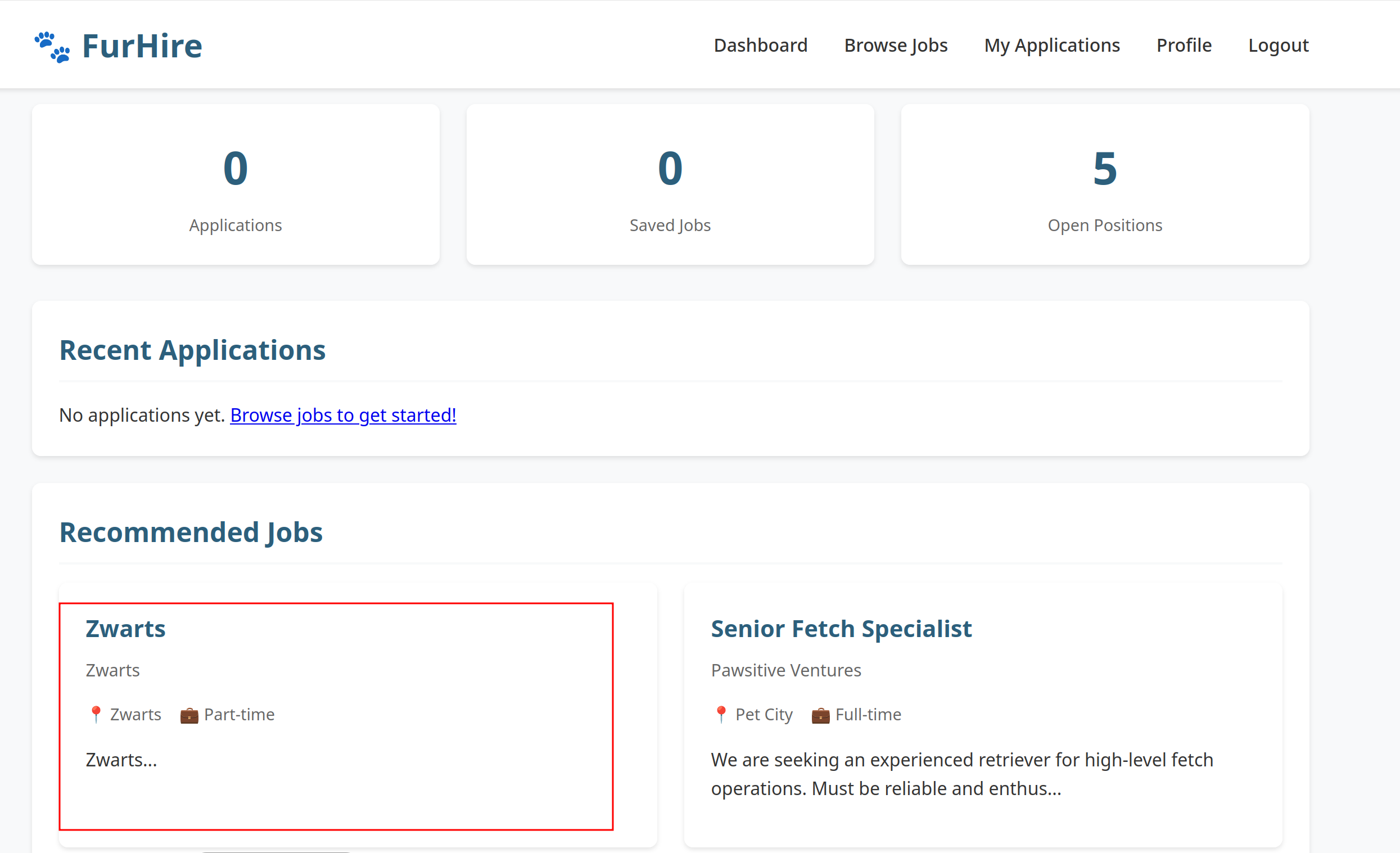 Log back in as the JobSeeker. Observe the notification indicating that the application has been accepted.