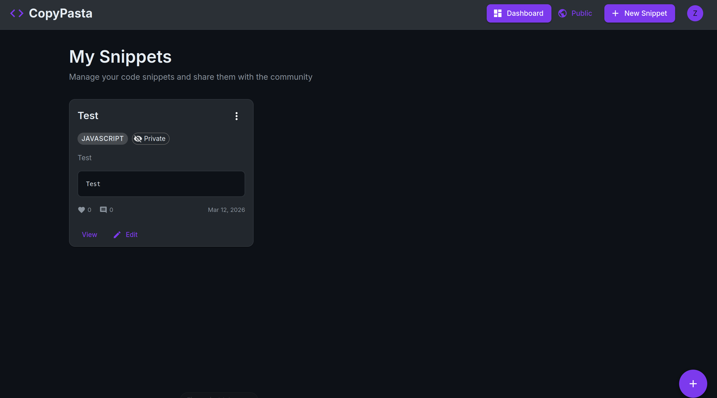 - My Snippets / Dashboard: Create and manage personal code snippets