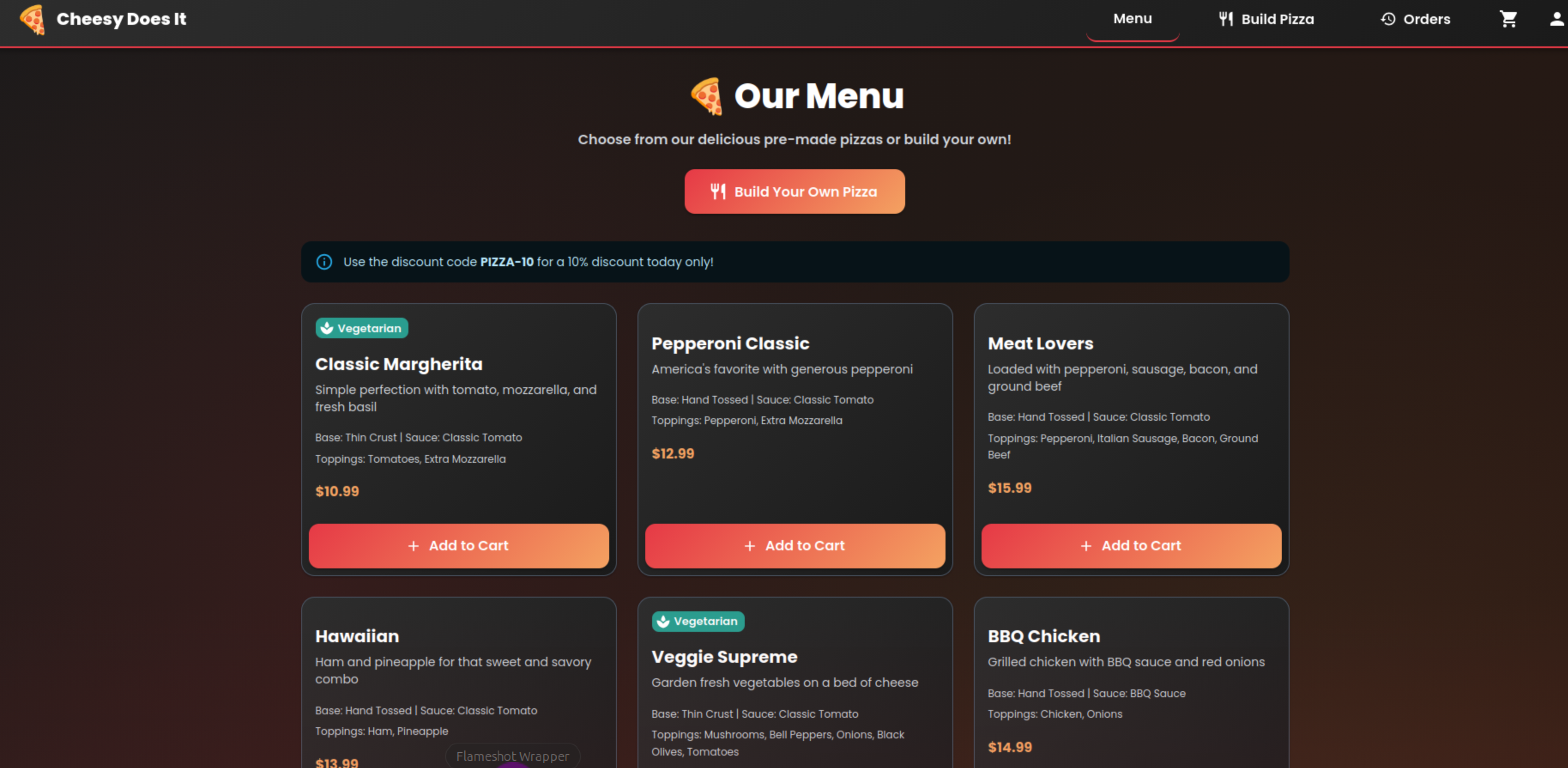 Use the discount code PIZZA-10 for a 10% discount today only!
