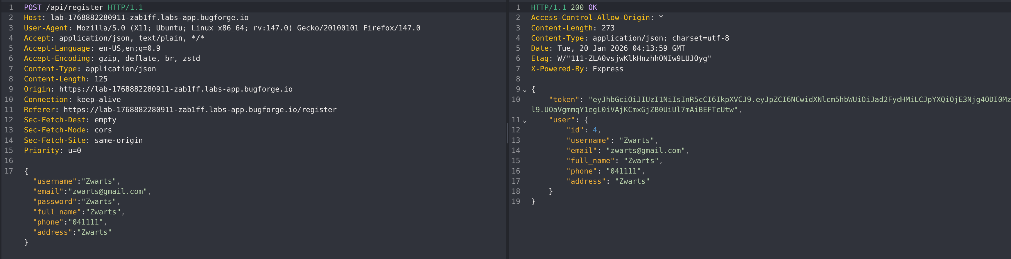 Begin by inspecting the account registration flow. Pay close attention to the request and response to identify whether any role, permission, or privilege-related fields are being assigned or trusted during account creation.