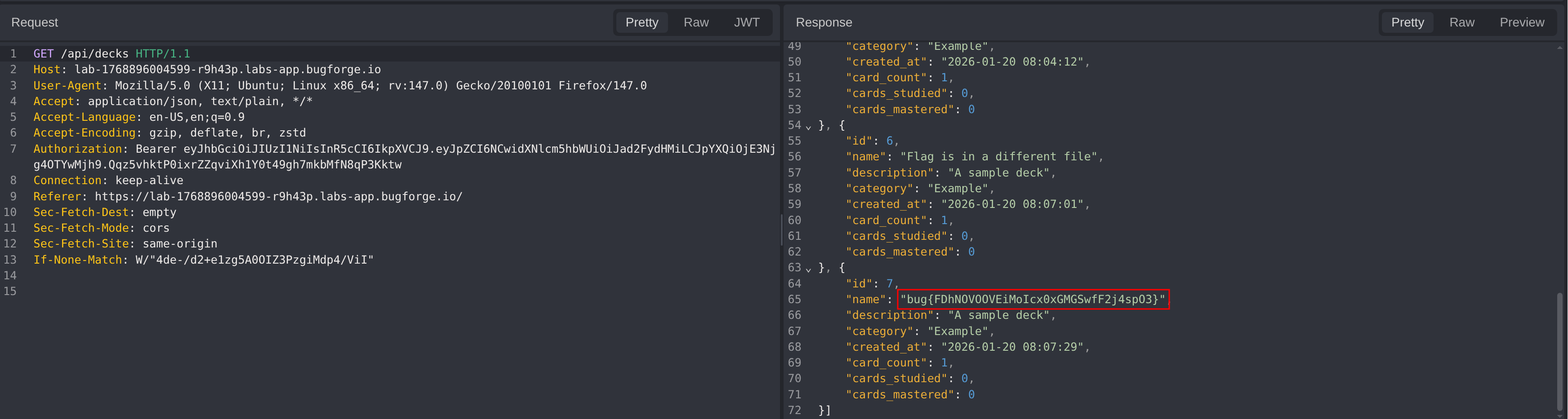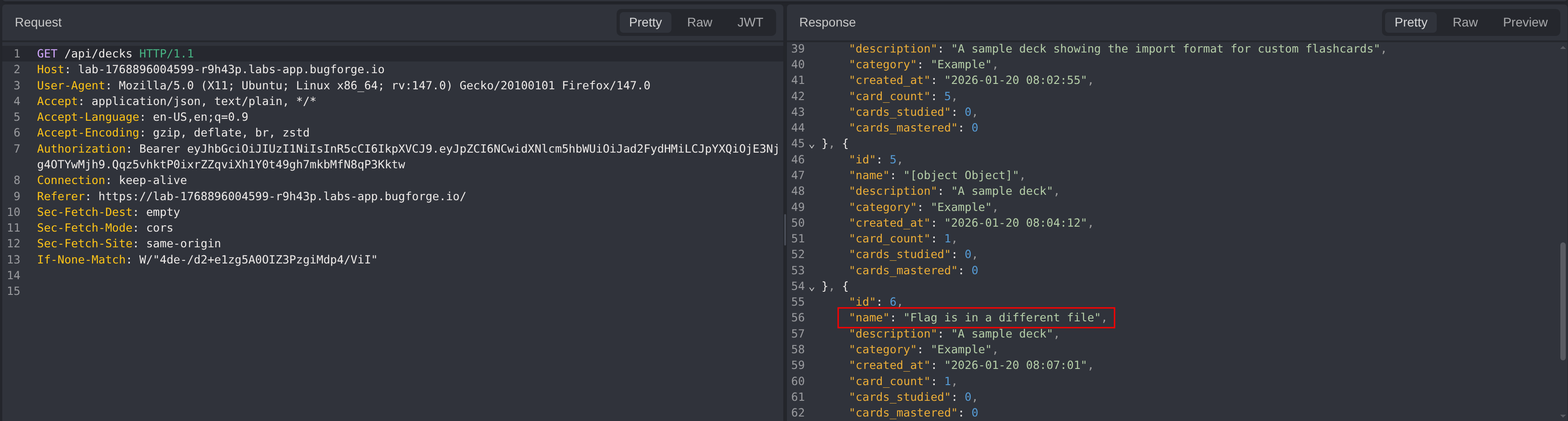 This challenge demonstrates a classic XML External Entity (XXE) vulnerability introduced through a server-side XML file upload feature exposed via the Import Deck functionality. After establishing a baseline during account creation, testing focused on the XML parsing behavior implied by the application’s support for JSON and XML inputs. A traditional XXE payload using an inline DTD with an external entity was submitted, initially attempting to read /etc/passwd and later adjusted to file:///app/flag.txt based on observed challenge patterns. The successful resolution of the external entity and disclosure of the flag confirmed that the backend XML parser allows DTD processing and external entity expansion. This highlights unsafe XML handling that enables arbitrary file reads and illustrates how legacy XXE payloads remain effective when secure parser configurations are not enforced.