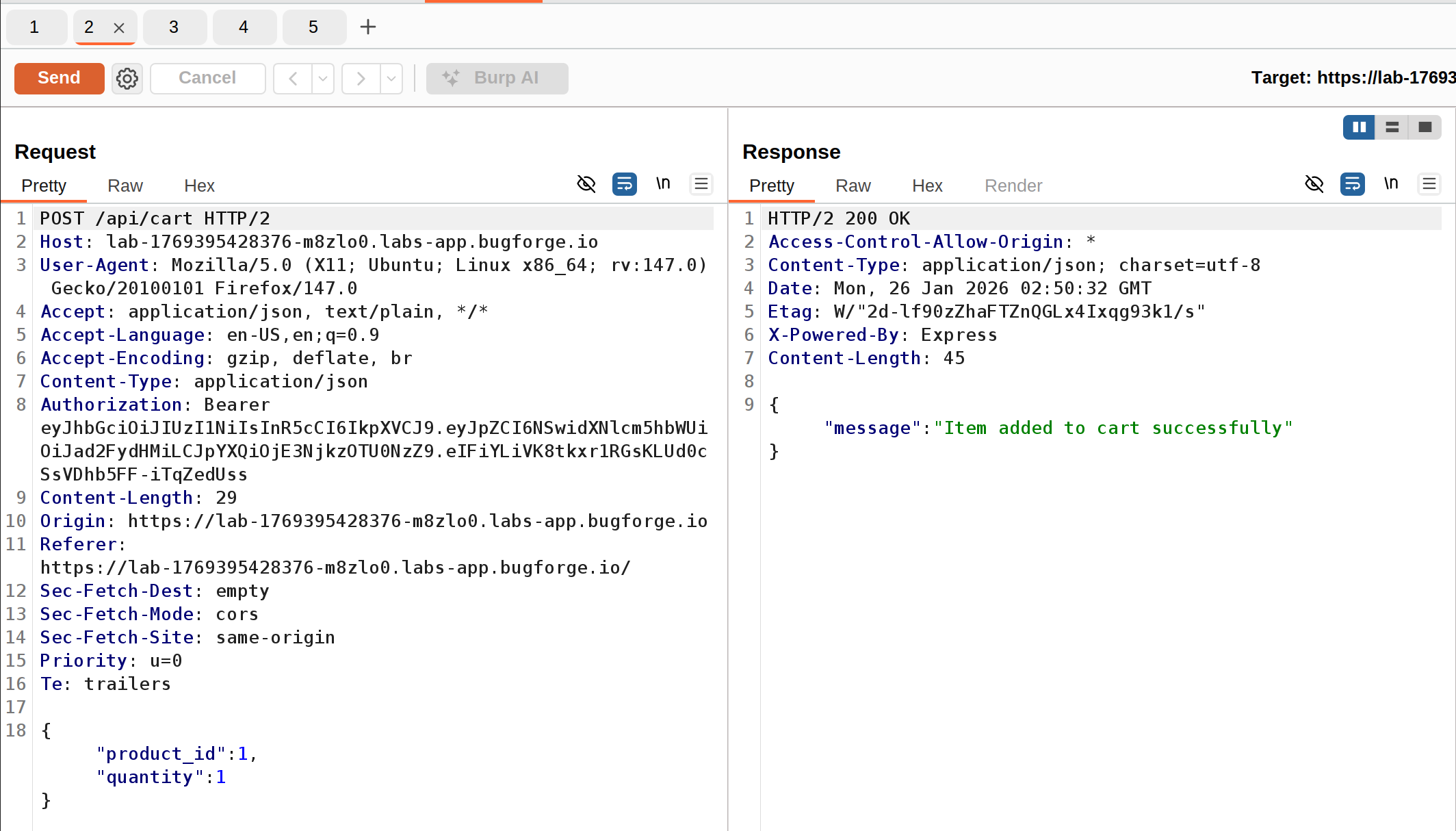 Analysis of the checkout process revealed that the application reads the cart state twice during order processing: once for price calculation and validation, and again for order fulfillment. This separation between verification and execution creates a potential TOCTOU (Time-of-Check Time-of-Use) vulnerability. By sending multiple requests in parallel, it may be possible to modify the cart contents between these two reads.