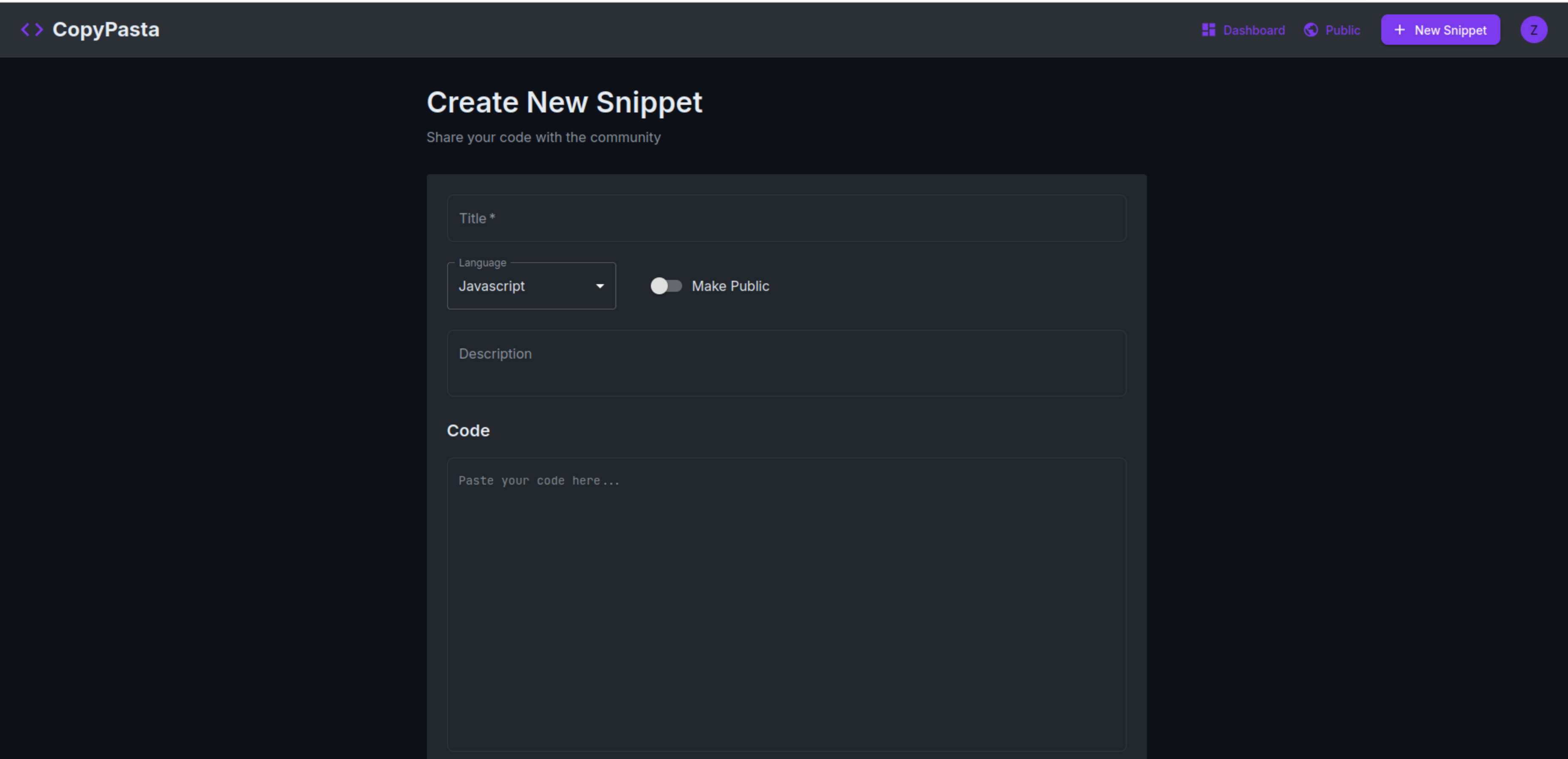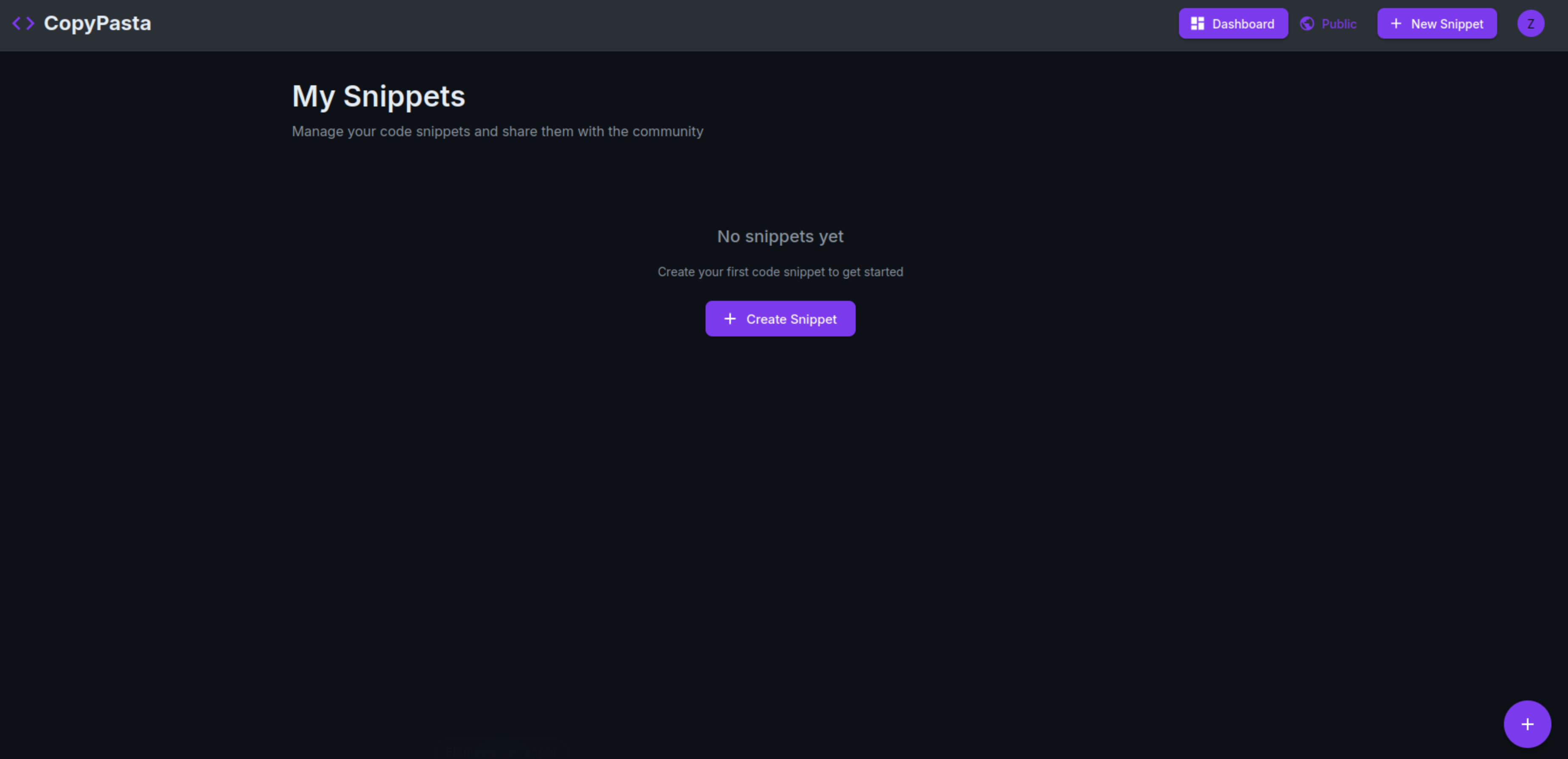 First page you land on after registraion is the Dashboard which displays “My Snippets”.