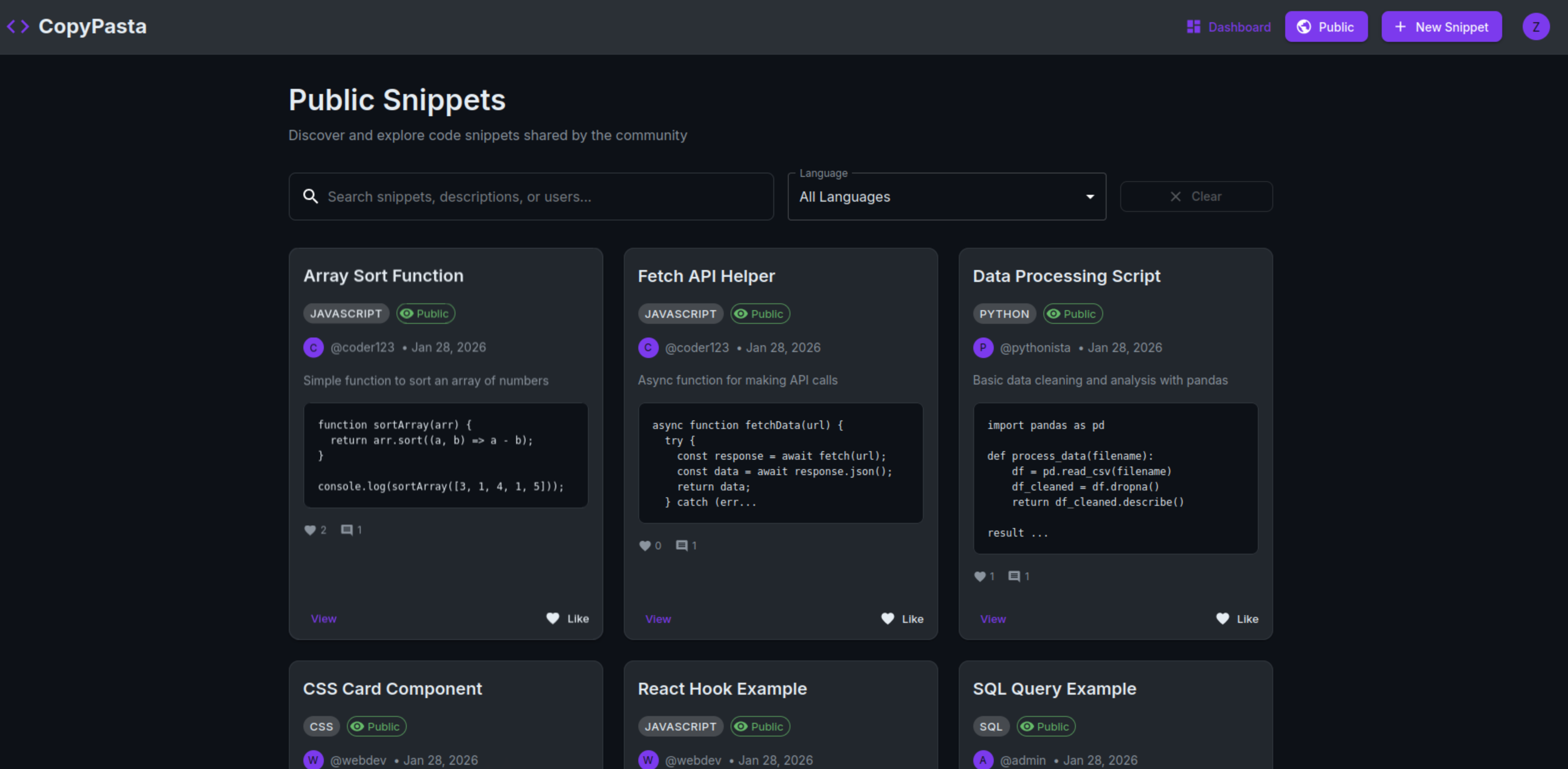 There is a public page where you can view other people’s snippets that they’ve marked as public. You can view, like and leave comments on these snippets.